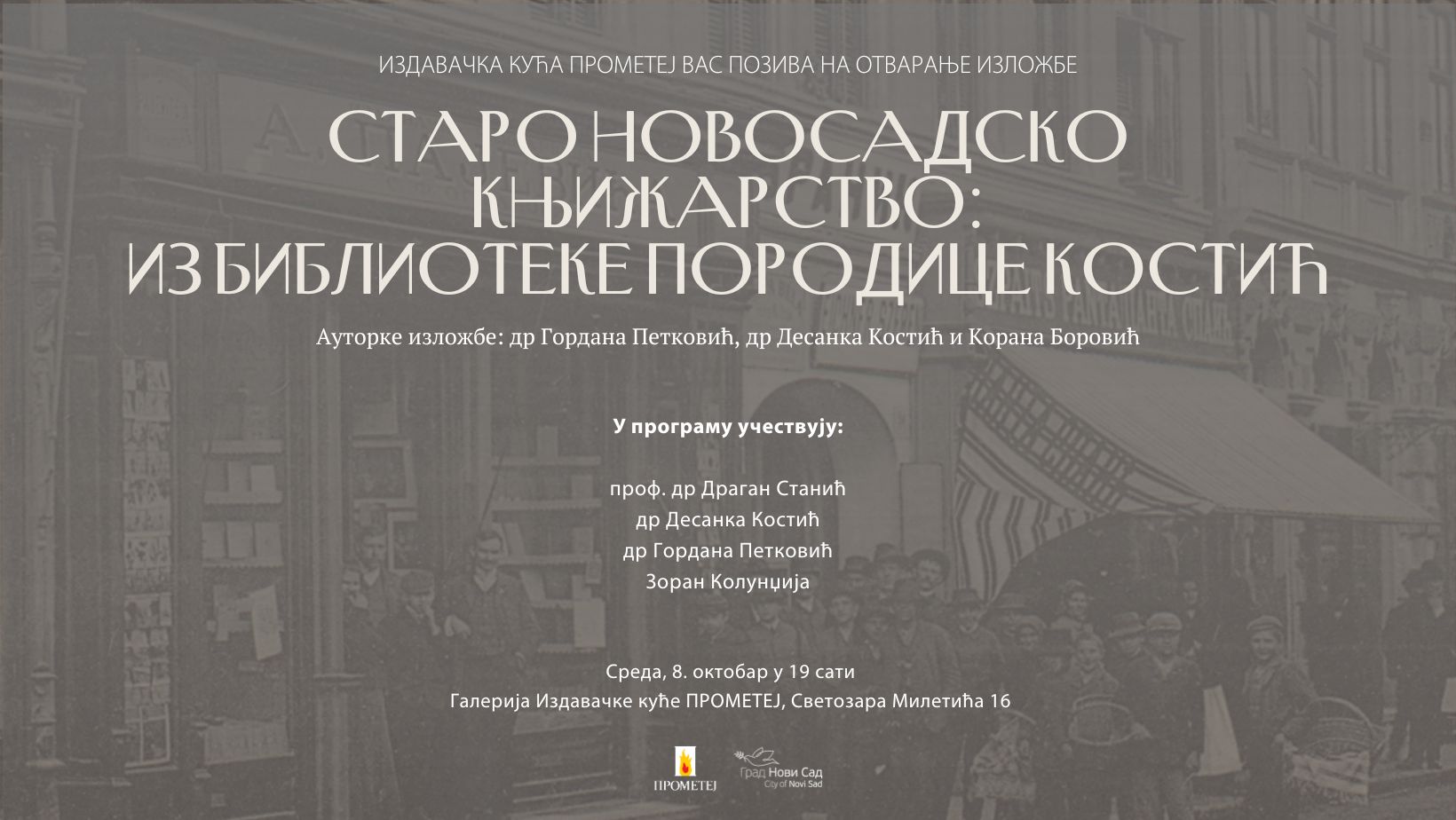 Кроз изложбу Старо новосадско књижарство – из библиотеке породице Костић ауторки др Гордане Петковић, др Десанке Костић и Коране Боровић у галерији Прометеј биће представљена збирка књига, фотографија и докумената из приватне библиотеке породице Костић.