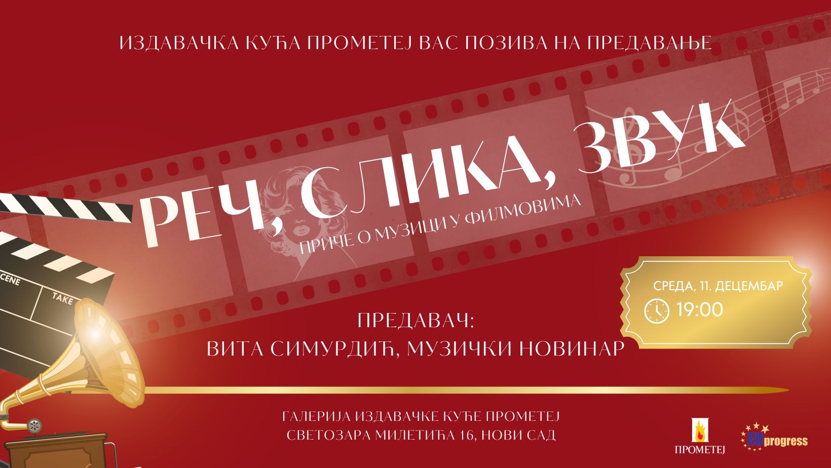 У галерији Издавачке куће Прометеј (Светозара Милетића 16, Нови Сад) у среду, 11. децембра, са почетком у 19 сати, одржаће се треће предавање музичког новинара Витомира Симурдића, посвећених музици у филму.